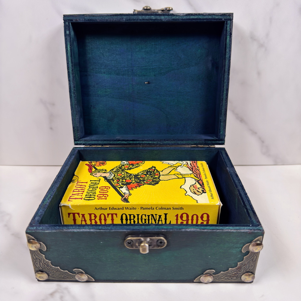 This wooden box is crafted to resemble a vintage storage box, adding a touch of nostalgia to your space. It's perfect for storing your tarot deck or any cherished items you want to keep secure and organized.