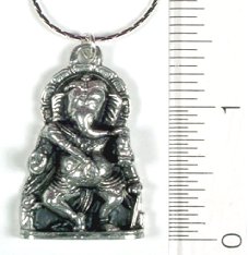 Hindu God of Happiness and Remover of Obstacles in ones life path. Approx. 1 7/8" long x 1" wide. Comes with chain