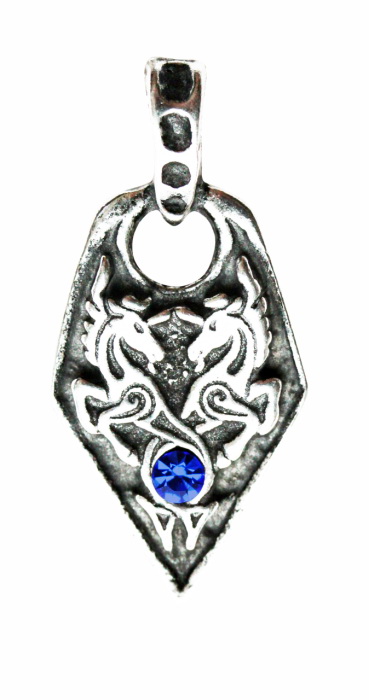 Produced in pewter, accented with Swarovski crystals, and supplied with chain.