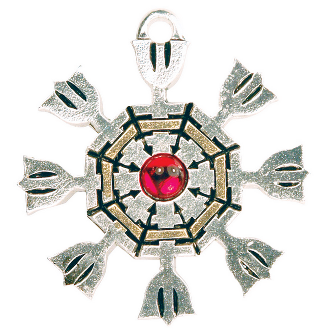 Also known by the Vikings as Aegisjalmur this eightfold spindle symbolises order and completion. Considered to be the greatest talisman for magickal power in the North, it is reputed to help its wearer create Order from Chaos, successfully complete all tasks undertaken and is considered to have protective powers. Crafted in English pewter and supplied with a detailed leaflet giving a Ritual of Empowerment (and disempowerment), it is supplied with a lovely, black velvet drawstring keepsake pouch and an 18" link chain.