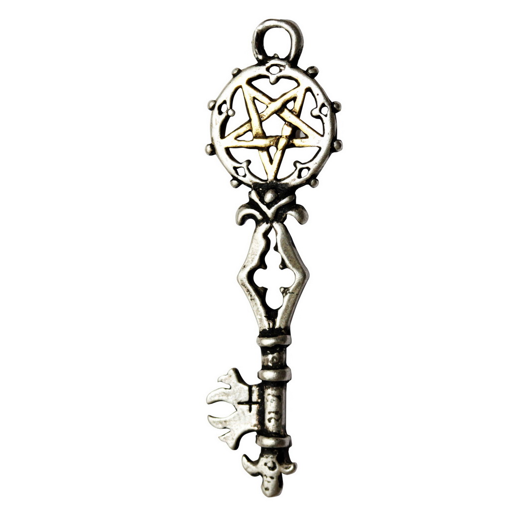 Symbolising the Key to the gate of King Solomon's occult learning and arcane knowledge this magickal pendant is reputed to bestow upon its wearer the power of sorcery and should be used with the Wisdom of Solomon. Crafted in English pewter and enhanced with gold plating, the pendant is supplied with a detailed leaflet giving a Ritual of Empowerment (and disempowerment), it is supplied with a lovely, black velvet drawstring keepsake pouch and an 18" link chain.