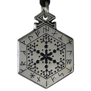 The Armanen rune set was originally developed by Guido Von List (1848-1919), and he claimed them to be a rediscovery of the primal Ancient Magical Runes. These runes came to List in a vision while he was temporarily blind. The most original concept in his rune set is List’s claim that his 18 runes correspond to the “18 Magical Spells” spoken by the Norse god Odin. In the old poem, Havamal, "the high ones words”, Odin speaks of 18 spells to avert any woe in the struggles of life. There are spells for Victory in War, Healing, Marriage, Protection in Battle, and so forth. Guidance by these runes maintains a healthy, balanced way of being, in accordance with the rest of Creation, a harmony between Man and Nature. On the front of our original Magical Amulet, is the Mother Rune, Hagal, in the Tree of Life form.