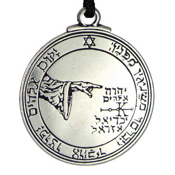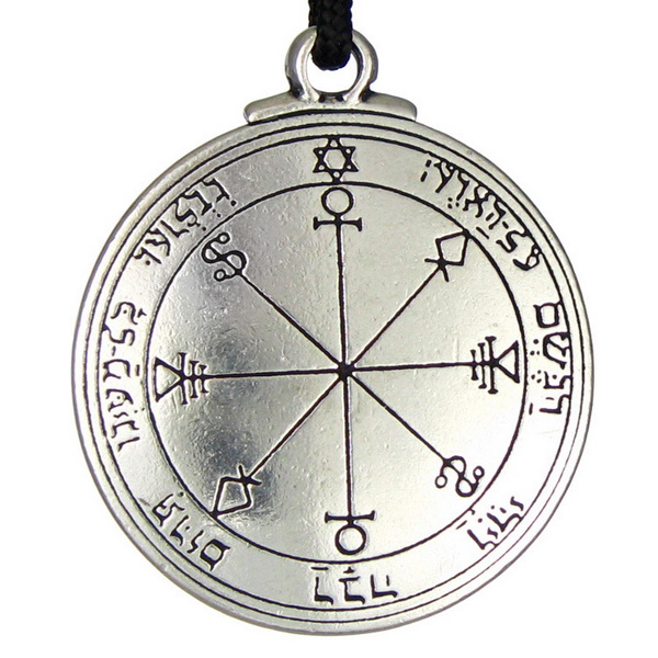This is a pewter, 1 1/2" diameter, Talisman of the Moon, 5th Pentacle of the Moon Pendant. Comes on black cord. Enjoy the power and sigils of the moon and its dynamic enlightment. Aides in protection of phantoms of the night and nocturnal evil. Also aides in finding answers through dreams.
