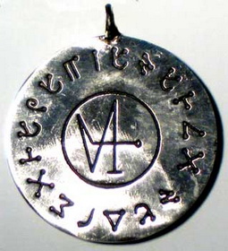 Wear to make your wish come true. On the front is Gabriels name in Angelic script with her Sigil in the center. On the back in english it says: Gabriel Arch Angel of Hope, who grants wishes, grant my wish. No chain.