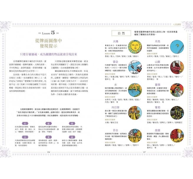 塔羅「對應牌」、「數字」、「圖像提示」等象徵元素比對整理,深化塔羅神祕學知識,功力倍數加成。