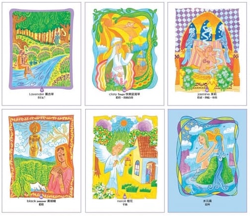 ◎清新可愛的日系插畫:與其它塔羅牌不同的是,日本的「神聖芳療卡」將抽象的氣味轉化成清新可愛的圖像,呈現出33幅不同的精油代表風景。