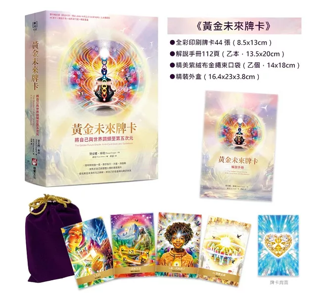 黃金未來牌卡:將自己與世界調頻至第五次元(44張牌卡+解說手冊+絨布束口袋+精裝書盒) (the Golden Future Oracle: A 44-card Deck And Guidebook)