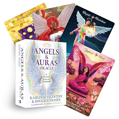 Radleigh Valentine and Dougall Fraser are best-selling authors, spiritual teachers, and dear friends who began to see interesting parallels with their work. Specifically, they noticed a link between the colors that the archangels vibrate to and the aura colors that Dougall teaches in his work. This led to two years of co-teaching their wildly popular Angels and Aurascourses to thousands of students, and now the divine collaboration of the Angels and Auras Oracle.