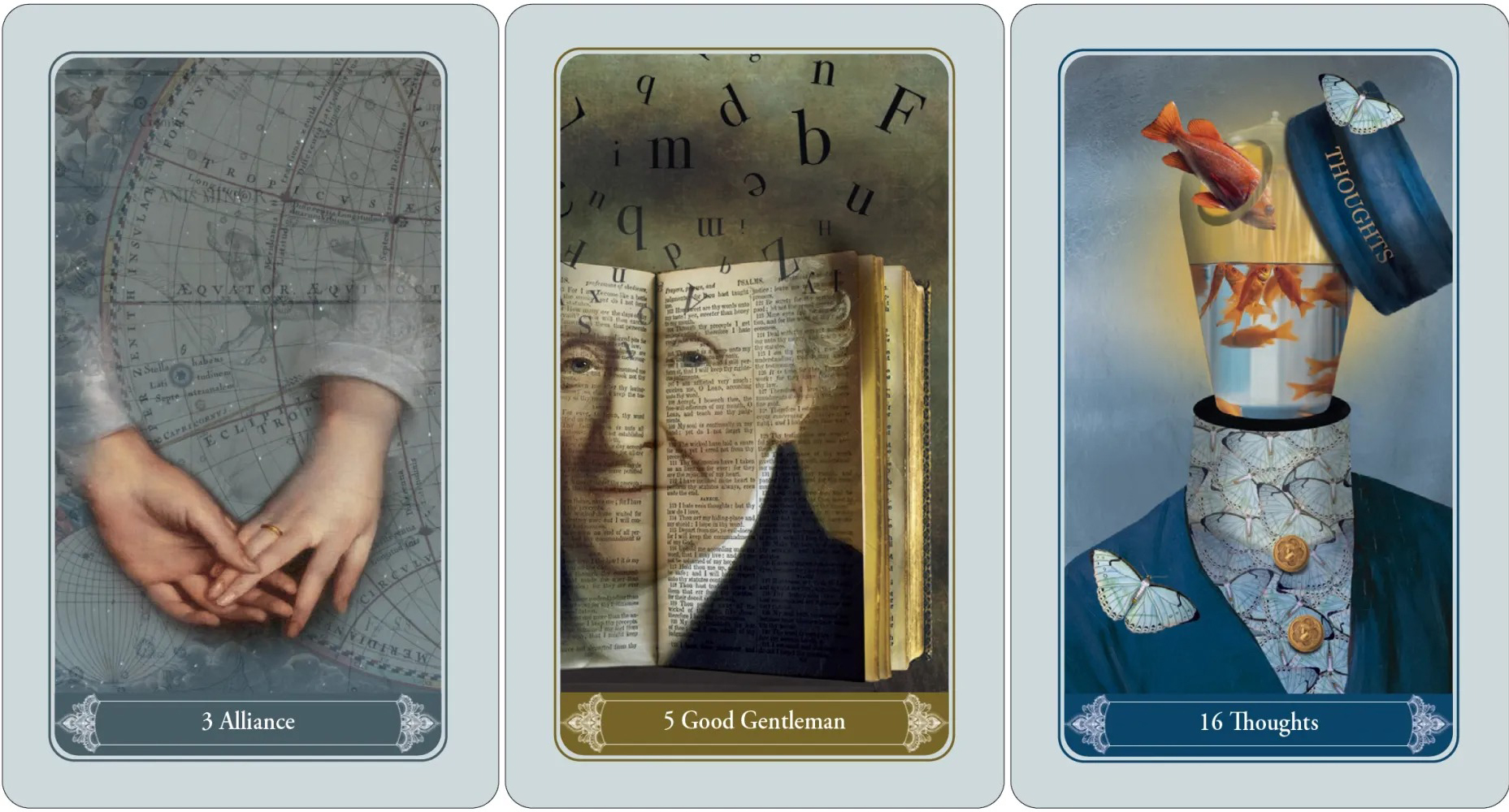 The unusual collages of these cards take us into dream-like sceneries. With this deck the artist and Kipper specialist Christephania has created a relaunch of the traditional Biedermeier cards. While the basic meanings of the classic cards have been retained, much has been modernized and the symbolism expanded so that the images allow us to dive into deep levels of our soul. The detailed and insightful texts in the booklet offer explanations and interpretation aids for each card.