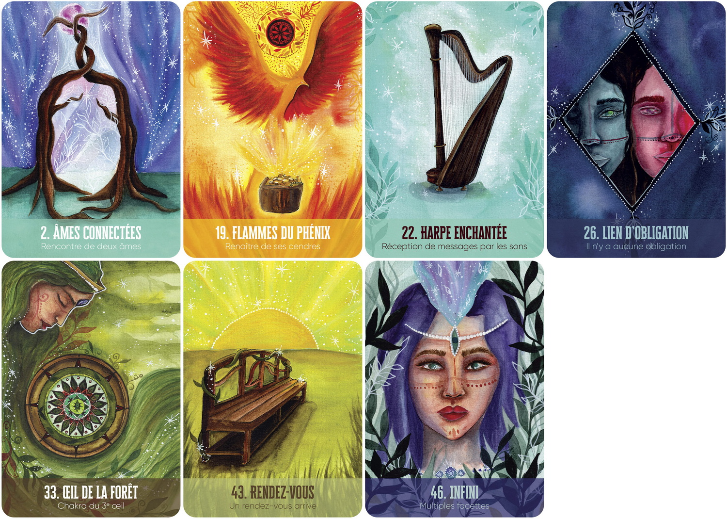 - 46 cartes empreintes de magie et magnifiquement illustrées par Marie Minéa Mocka-Celestine.