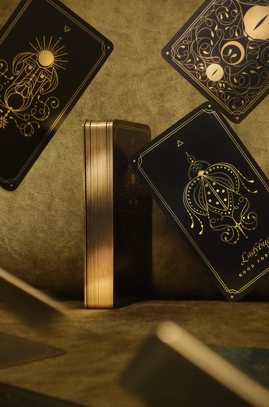 - 44 Cards with gold foil on the cards' faces and backs