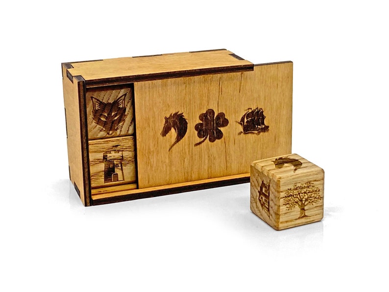 Minimalist wooden Lenormand set. No pictures, signs only. No paper cards, only smart and compact wooden cubes.