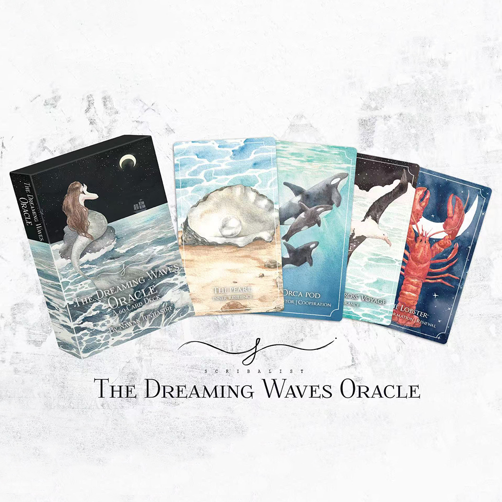 Step into the serene world of the Dreaming Waves Oracle, a 60-card deck filled with soft feathered whispers of wisdom and soothing waves of inspiration. Each card carries gentle guidance, drawing you closer to the rhythms of the sea and the lightness of floating feathers.