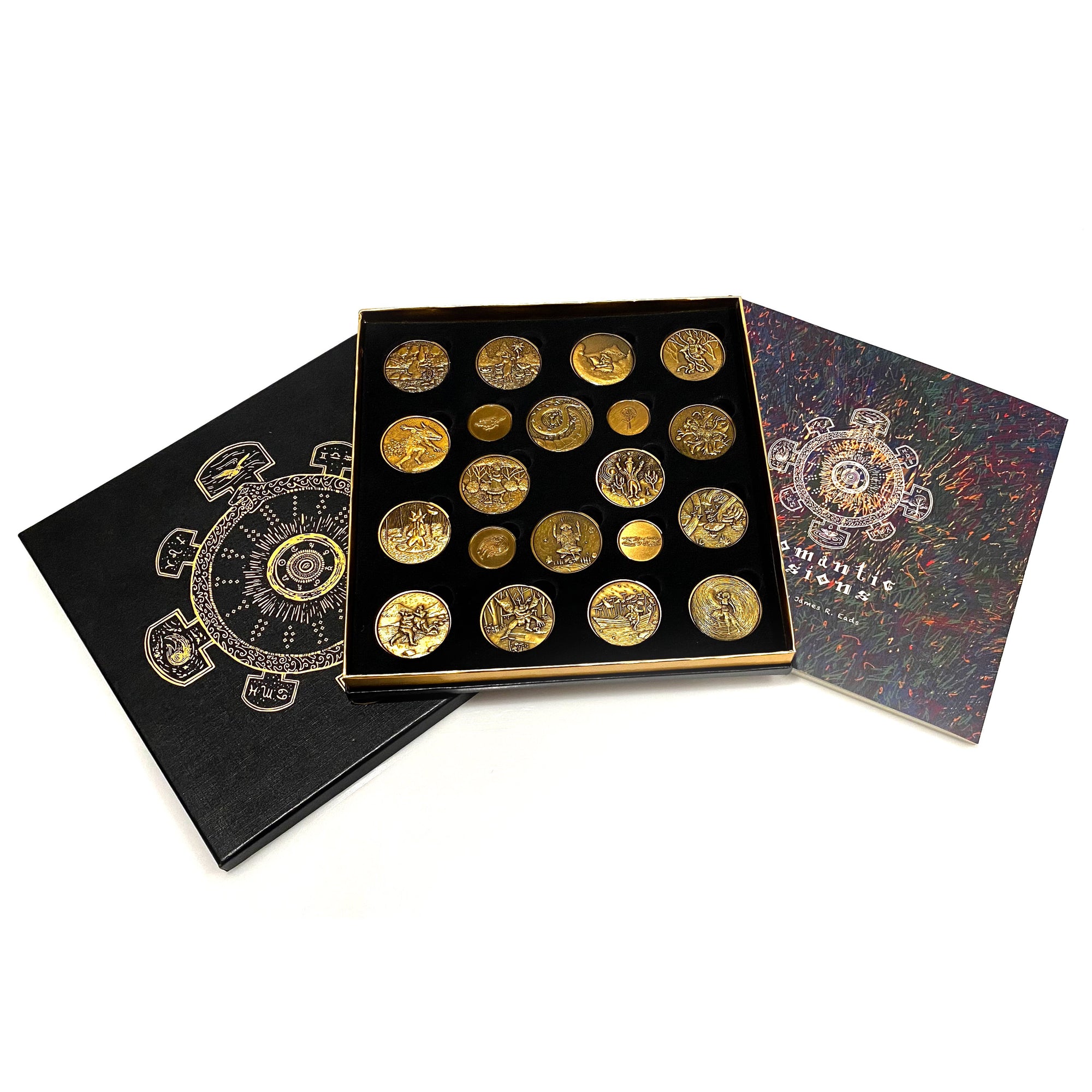 Geomantic Visions is a set of 20 gold-plated zinc alloy coins in an 8" x 8" keepsake box with a manual on Geomancy.