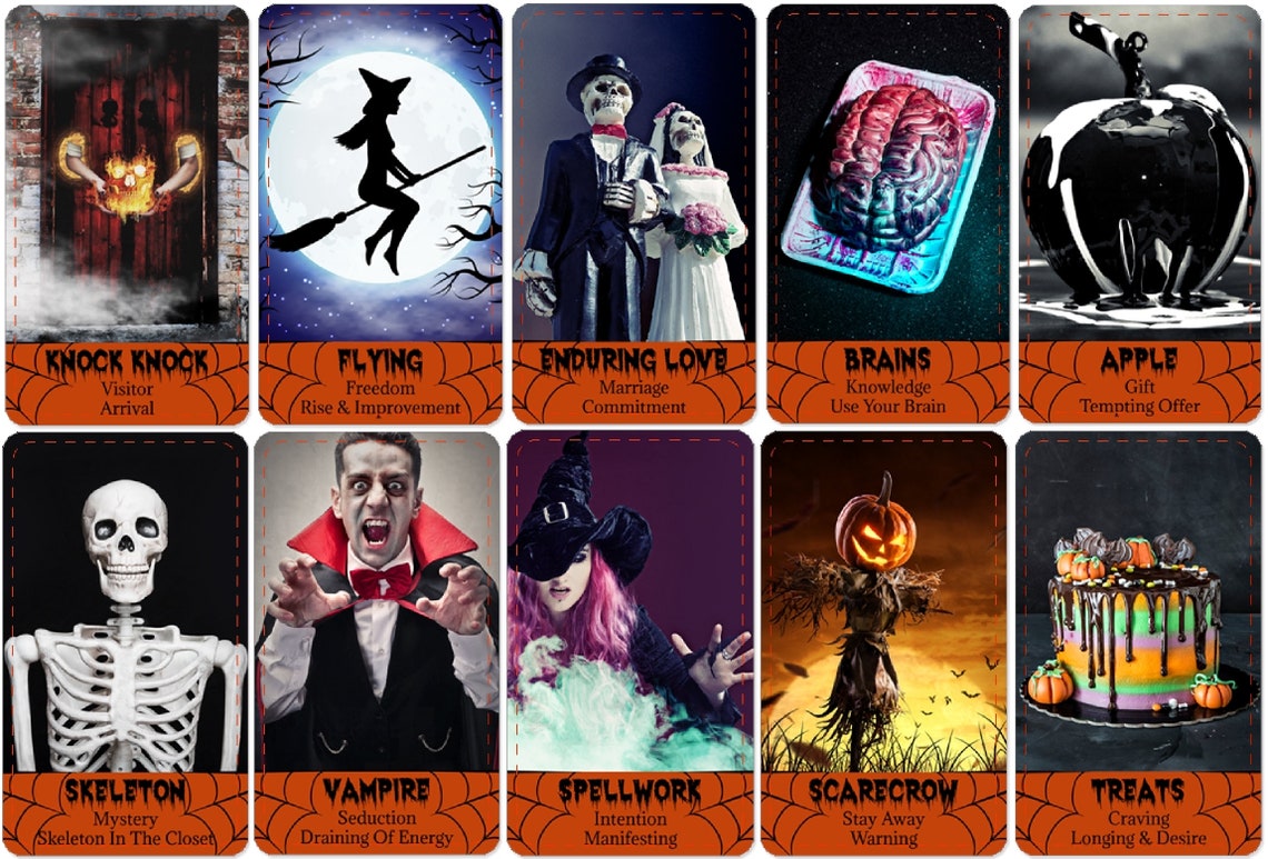 The artist created this deck to add a little fun to your readings :) I have selected 78 images associated with Halloween. Each card also has suggested meanings but also use your intuition to bring out more meaning to each card. This Halloween deck would be great for readings at any Halloween party or your Social Media! Good for love and general readings.