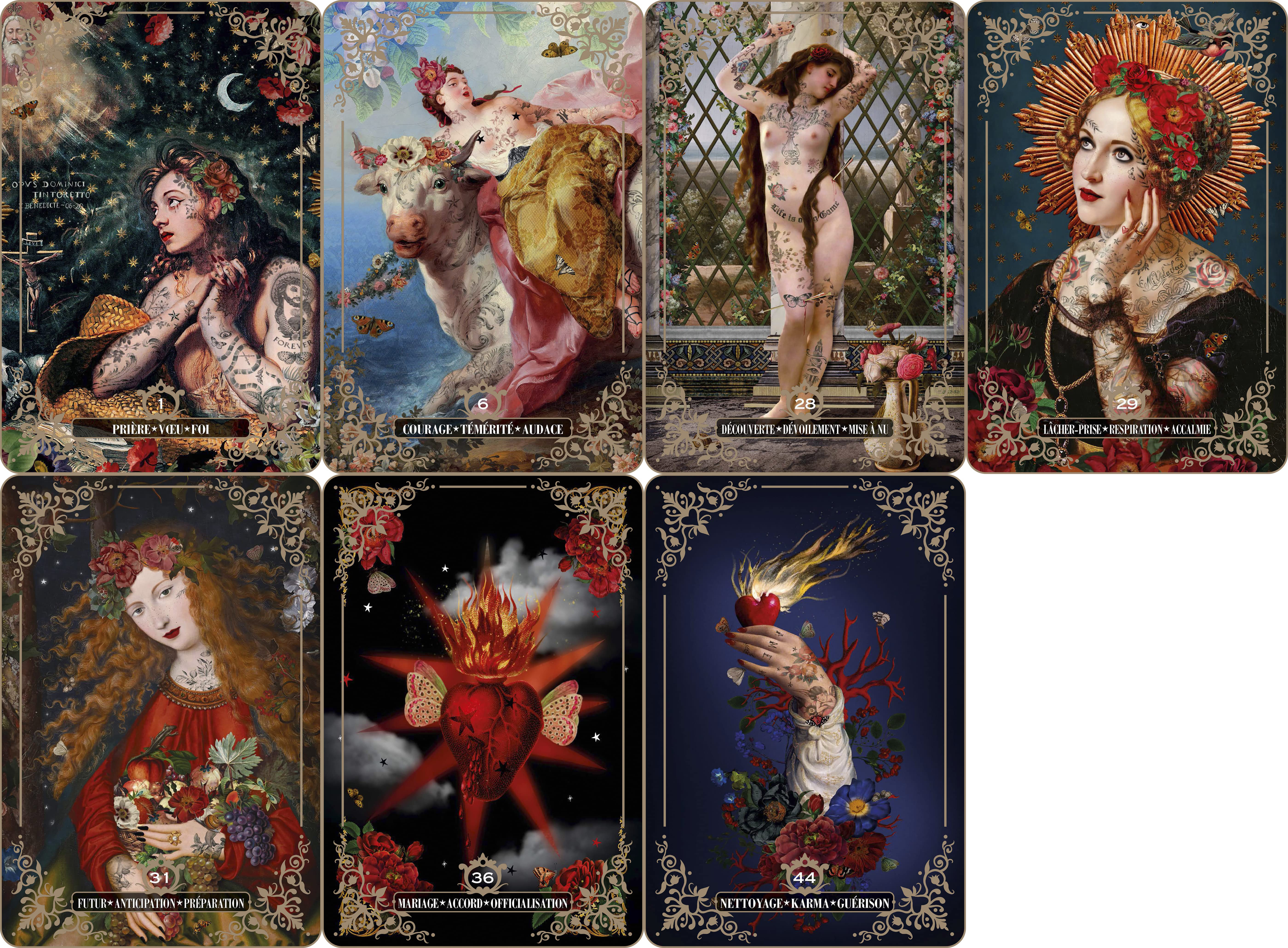 This item is required advance payment to order and estimate arrived in 4-8 weeks.Un sublime oracle de 44 cartes merveilleusement illustrées par Bénédicte VOGLIO BENE, inspirée de la peinture classique italienne et du street art, dont les messages sont canalisés en médiumnité par SANDYTATOO, artiste tatoueuse et médium.