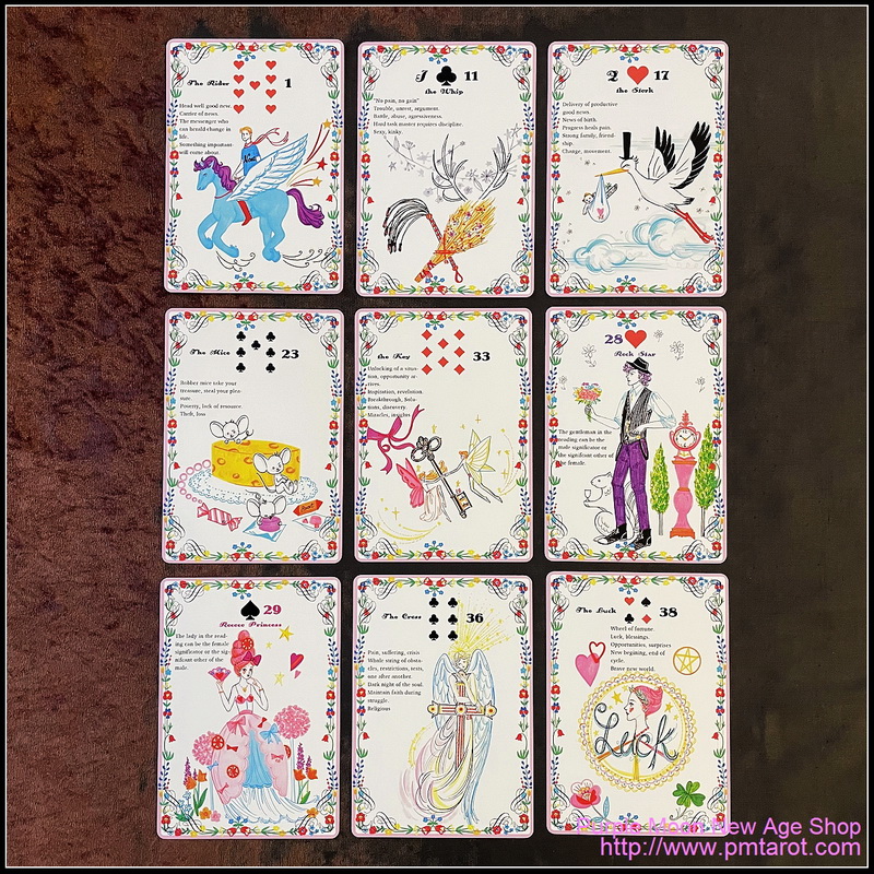 This deck is a romantic and delightful version of traditional Madame Lenormand.