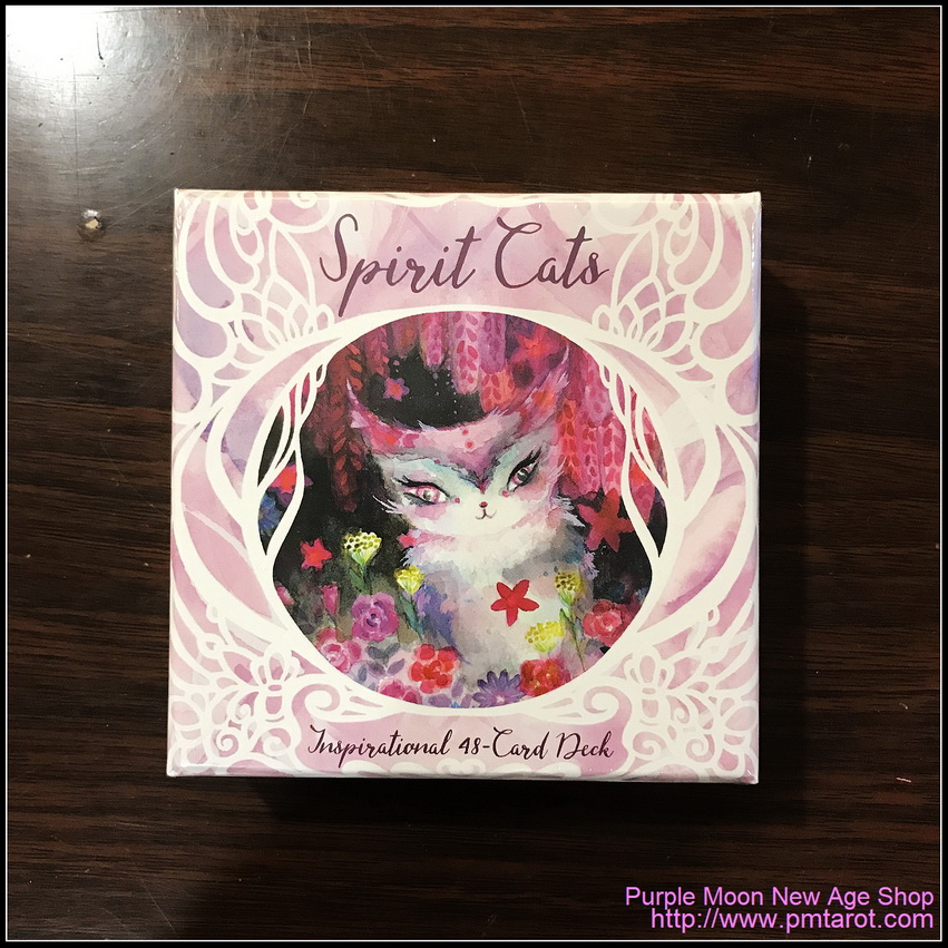 Oracle deck consisting of 48 inspirational cards to bring you peace, connection, and clarity. Each card has a hand-painted Spirit Cat printed on one side and a unique healing message on the other.