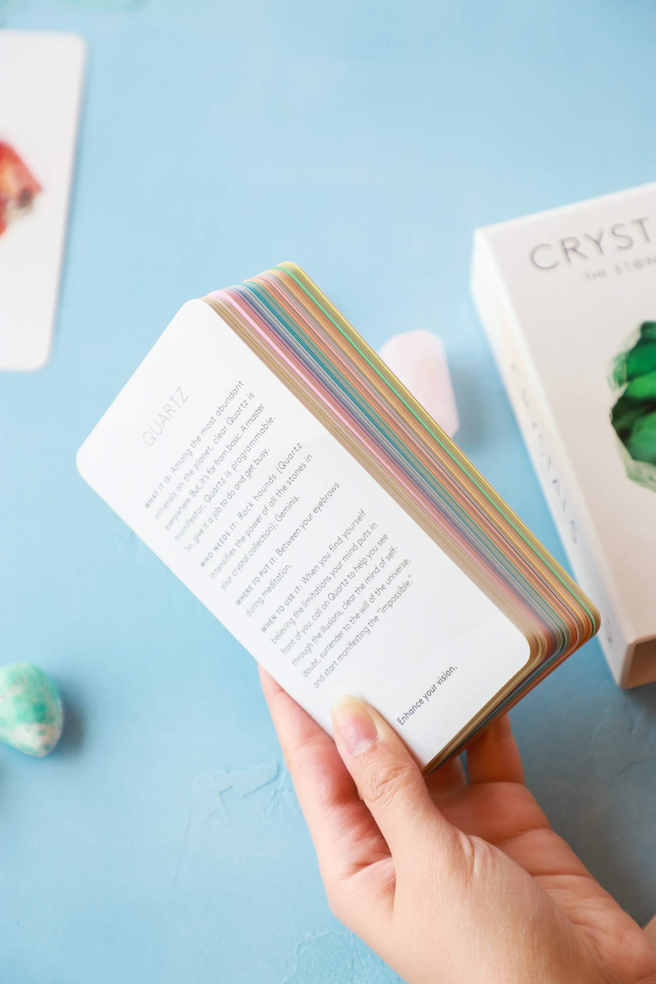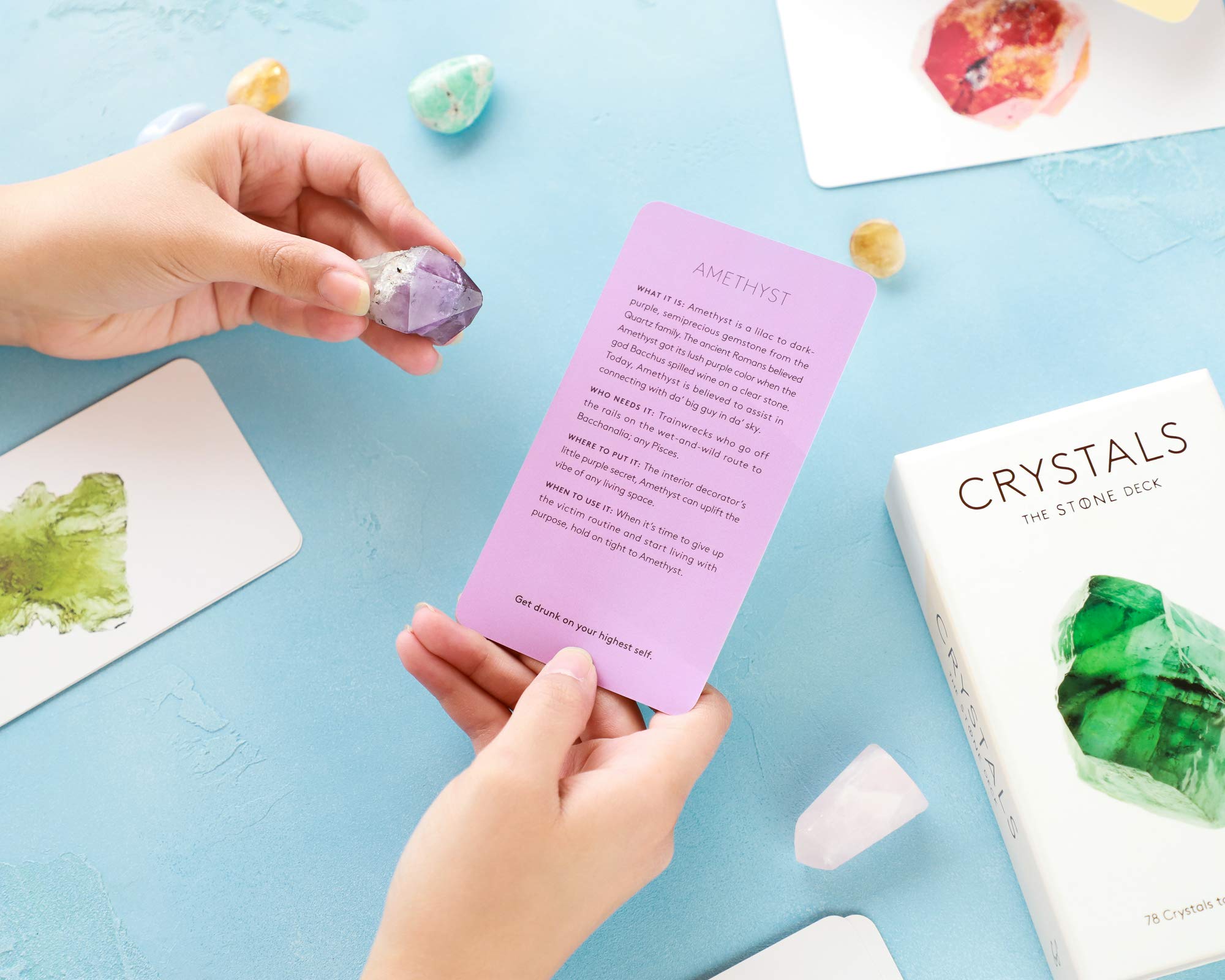 This item is required advance payment to order and estimate arrived in 3-4 weeks.This luminous deck makes it easy to bring crystal energy to everyday life. Each card features a photo of a gorgeous crystal on the front and an illuminating description of the stone's powers on the back (such as why to use serpentine for a fresh start; ametrine for indecision; and kunzite for love). Users can select a crystal based on their needs or pull a card at random to see what the universe has in store. Curated by the makers of Stone, an app for crystal healing, and brimming with positive energy, this deck is a practical and beautiful accessory for modern mystics and spirituality seekers.