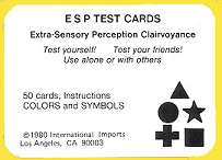 Pocket sized deck of Extra-sensory Perception Clairvoyance cards. Test yourself! Test your friends! Can be used alone or with others. Comes with 50 cards and instructions.