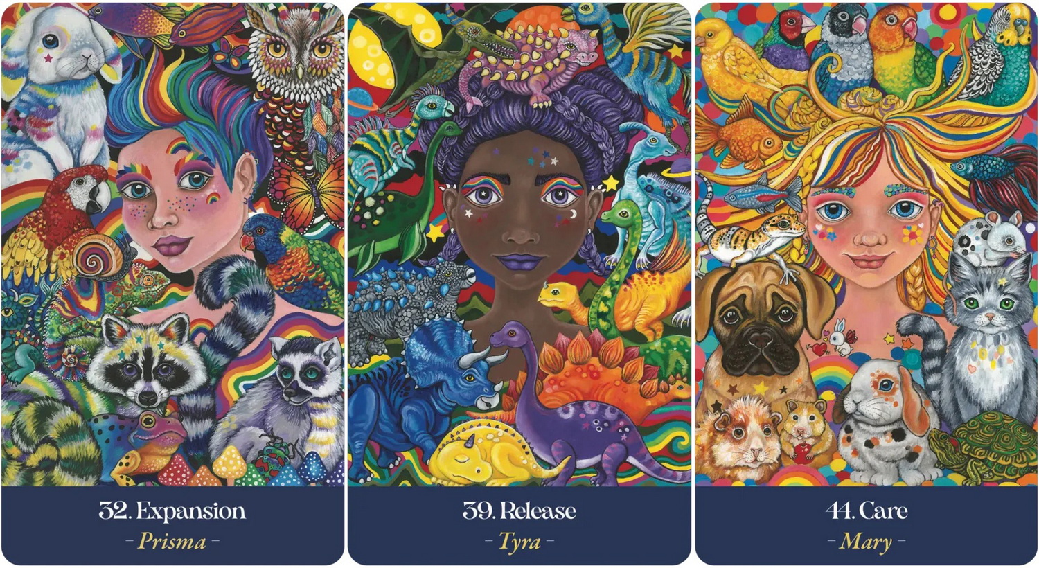 The Earth Mothers are magical guardians who care for the animals in this world and beyond. The spirited beings they protect are here to provide you with intuitive wisdom and clarity. Lynda Bell’s vibrant portrayals of 45 goddess protectors and their furry, feathered and finned charges will speak directly to your wild heart. Through this authentic rekindling of kindness and compassion, you can explore significant life lessons, discover your courage, and find divine sustenance. Includes 45 cards and 120-page full-color guidebook.