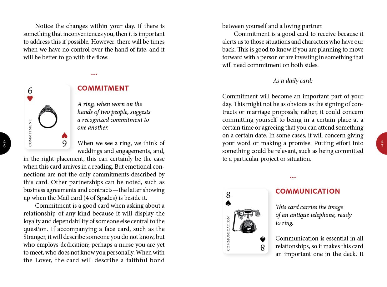 The cards have been designed to provide the reader with a comprehensive oracle system for our modern age. While the illustrations have an antique and mystical feel to them, the subjects covered by the 52 cards are relatable to our daily lives and will stand the test of time.