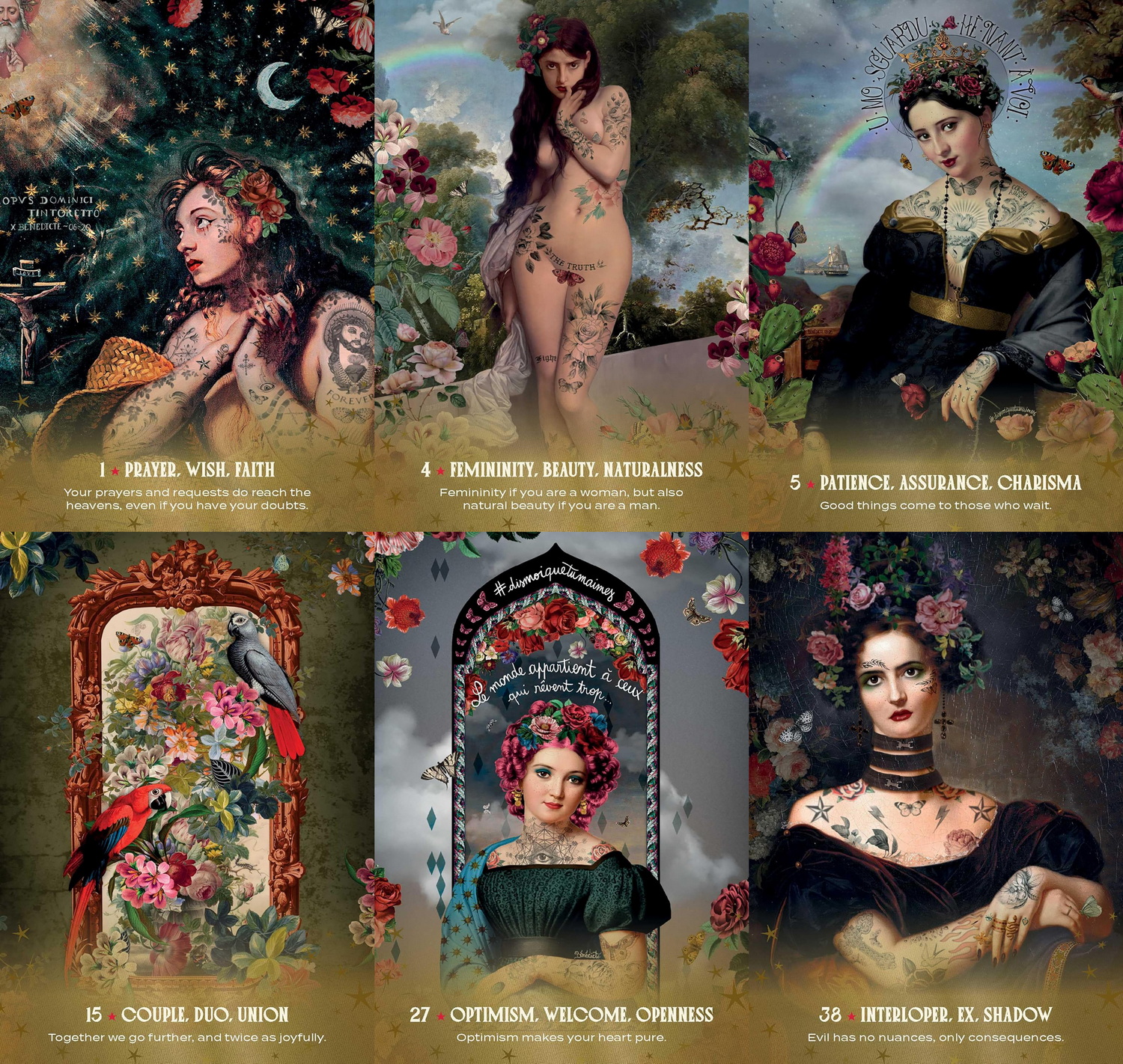 This item is required advance payment to order and estimate arrived in 2-4 weeks.This beautifully illustrated love oracle features classical imagery with a modern twist—all the collaged figures showcase stunning and modern tattoos.This luxurious deck includes 44 stunning cards that provide guidance, messages, and inspiring answers to questions about affection, emotions, and love.