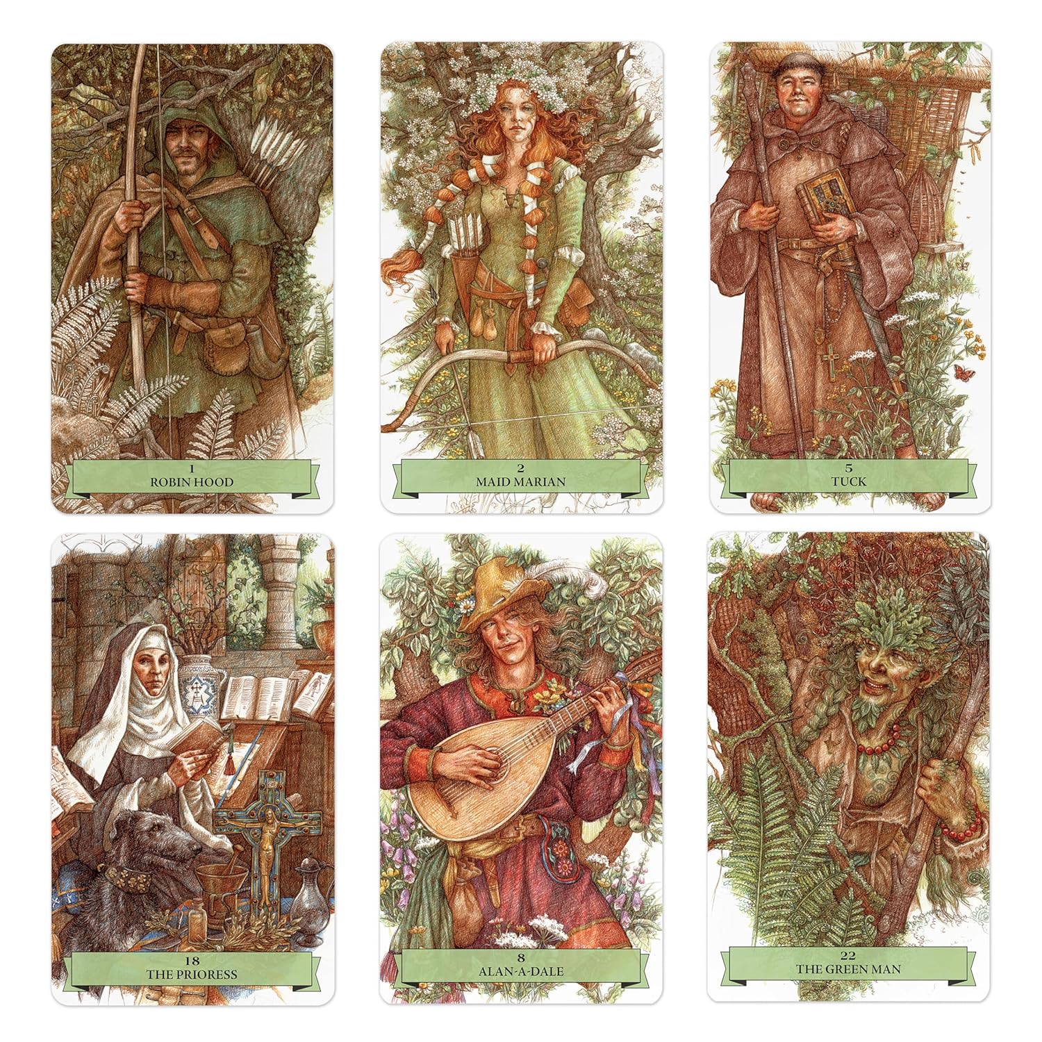 This item is required advance payment to order and estimate arrived in 2-4 weeks.The lore behind the figures Robin Hood and the Merry Men are some of the most enduring of all myths and legends, and their paths affect everyone who reads about them. This is a deck that breathes life into the forests of Sherwood, where romance, heroism, and the supernatural occur in equal parts, and questions about the most archetypal characteristics found in the human psyche can be answered. Written by the creators of the bestselling The Wildwood Tarot—including Mark Ryan, who starred in the cult-favorite TV series Robin of Sherwood—and illustrated by iconic artist Anne Yvonne Gilbert, this is an enchanting and enlightening tool for uncovering the legends hidden in the human subconscious.