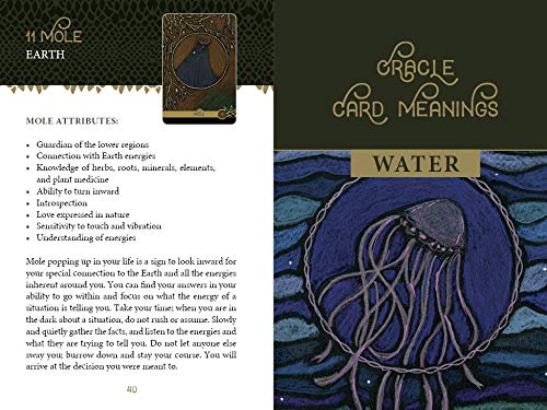 This item is required advance payment to order and estimate arrived in 2-3 weeks.Delve into the mysterious animal kingdom with 44 beautifully drawn oracle cards on black background of animal and mythical archetypes that focus on the four Earthly elements. Through the included easy-to-use guidebook, allow these majestic creatures to assist you with their messages, lessons, and advice as you follow your own spiritual path. Find your totem animal spirit guide, and experience how animal wisdom adds to your day-to-day circumstances, questions, and long-term growth. Explore self-awareness and emotional and energetic diversity and understand the importance of Mother Nature. Pick a card a day to meditate on, use the cards as stand-alone pieces within simple to complex spreads, or add them to other oracle and Tarot decks to expand the messages from Spirit. Find that primal, core piece of you that is waiting to be reawakened with the powerful connection to your animal allies with wild elements!