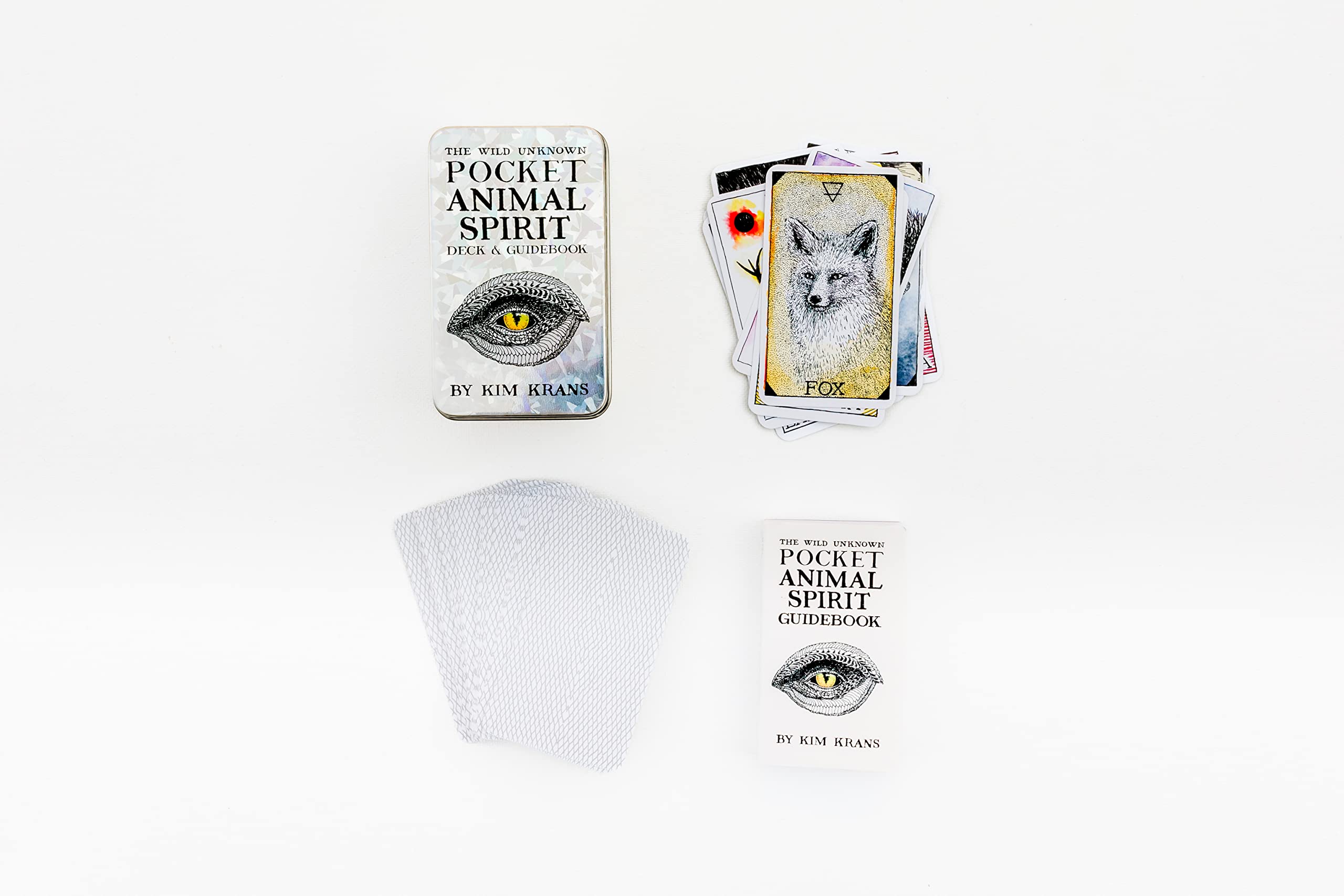 Hand drawn in the same dramatic, emotionally evocative style of The Wild Unknown Tarot, The Wild Unknown Pocket Animal Spirit Deck features 63 gorgeous cards, packaged in a perfectly portable keepsake tin. Divided into five suits structured by the five yogic elements that make up all living things — Earth, Water, Fire, Air and Ether, you’ll find creatures that roam the field and forest, swim in the oceans and rivers, inhabit deserts and grasslands and soar through the sky. The Ether suit holds the seven spirit cards, and represent the seven chakras of the subtle body. The powerful animal archetypes from realms both natural and mystical of The Animal Spirit Pocket Tarot offer insight into relationships, personalities, behaviors and tendencies and can be used alone or alongside The Wild Unknown Tarot to add an additional layer of depth to readings.
