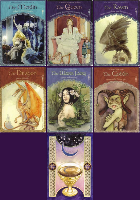 The Wisdom of Avalon Oracle Cards by Colette Baron-Reid is a 52-card divination system-an inspirational tool to bridge the unseen world of Spirit and the physical world of our day-to-day lives. Based on the rich mythology of ancient Britain Isle of Avalon and the wisdom teachings of its priestesses, these cards will help you find a valuable and powerful insights in all aspects of life as you chart your path and manifest your destiny with clarity and purpose. Their use will shed light on what has been, what needs illumination in the present, and what will weave patterns into the future. The deck will help you discover the potential of your own intuition as you follow the omens and symbols of the Goddess, the Kingdom of the Faeries, Merlin, and the Priestess of magical Avalon. See into the future ...and discover that you are more than you know! Here's what Jean Haller from New Age Retailer has to say! The rich legends and myths from the ancient Isle of Avalon come alive in this 52-card divination system. The full-color illustrations are attractively done in soft colors. The reverse of each card is marked with Celtic columns, a golden chalice, crescent moon, and stars, all surrounded by a rich indigo border. The gilded sides add a special richness to the deck. In the guidebook, Baron-Reid introduces the eight Messengers, 18 Animal Guides, five Faery Guides, and 21 Markers on the Sacred Journey, which can be used to chart a personal path and determine ones destiny.