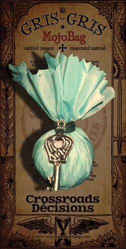 A Gris-Gris (or Mojo Bag) is a talisman or an amulet that protects the wearer and brings luck in a certain area of expertise or energy. It contains a variety or a combination of the following ingredients: herbs, oils, or fragrance, stones, bones, small artifact, piece of mirror or glass, magnet or lodestone, farina etc. depending of the theme.