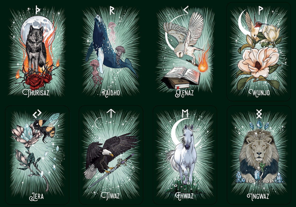 This item is required advance payment to order and estimate arrived in 2-4 weeks.Enhance your divination practice with this 24-card pocket oracle deck featuring Nordic rune interpretations and majestic animal companions.