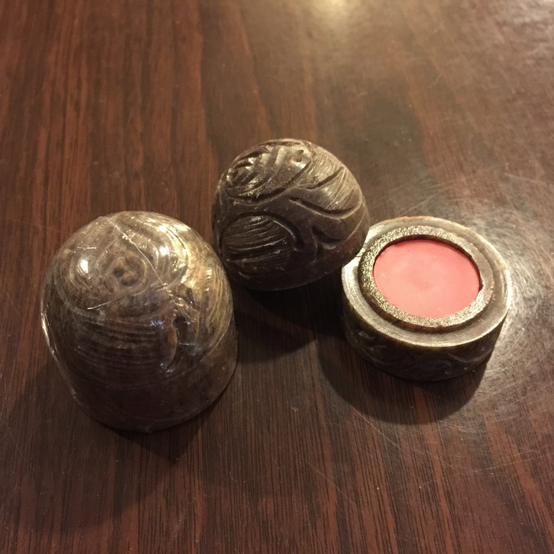 Dragon’s Blood scented solid perfume made from all natural flower oils, herbs and beeswax in a unique hand carved soapstone container. randomly chosen