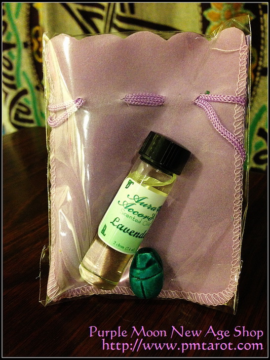 Since the time of building of the pyramids, scarabs have been worn or carried by those who believe in their mystical powers. It was the most popular of talismans, credited with bestowing upon its owner good health, happiness, strength and virility. Carry the scarab in a cloth purple bag and anoint in daily with lavender oil.