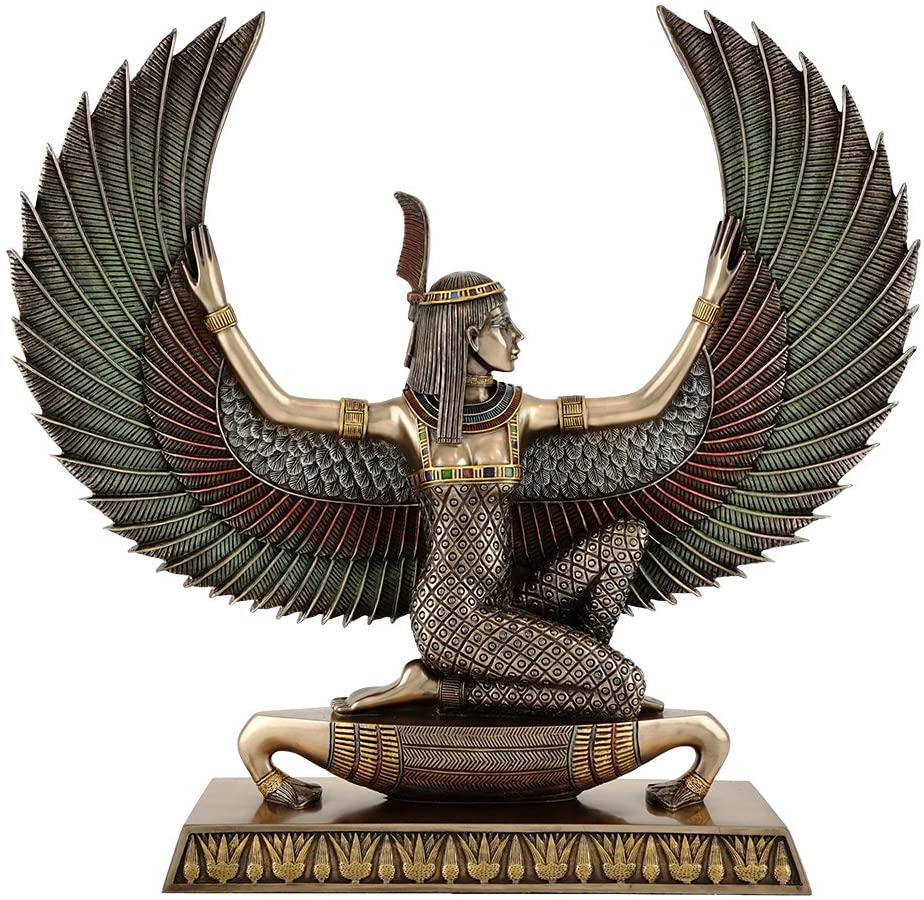 This item is required advance payment to order and estimate arrived in 4-8 weeks.A regal depiction of Isis with spread wings. Detailed silvery base with gold and copper red highlights. Hand Painted Resin