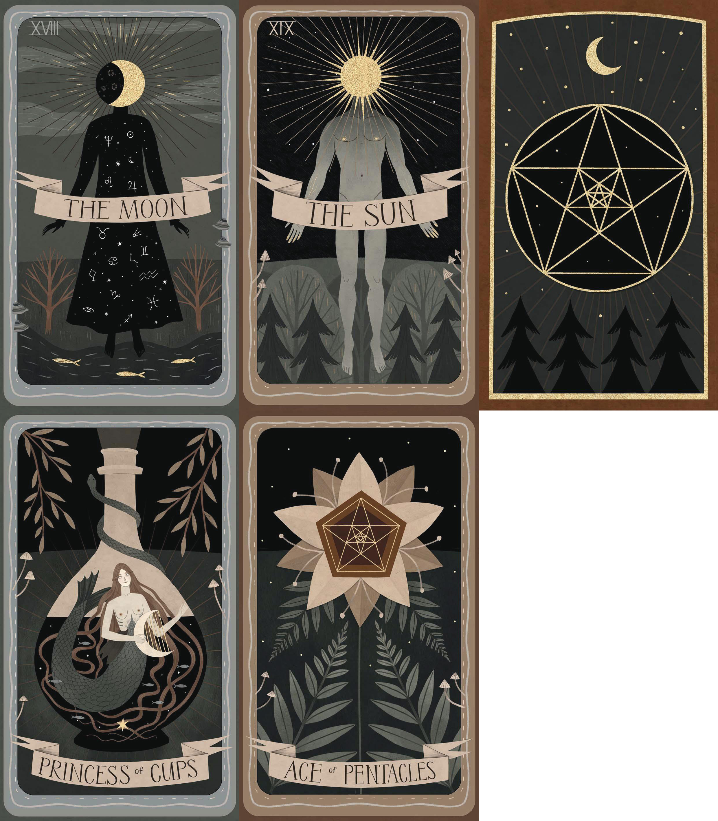 A starlit night sky, a silent pine grove, the sweet scent of resin carried by a quiet breeze—this is the enchanting atmosphere that permeates the cards of Green Codex Tarot! This stunning kit edition encases a deck of 78 cards, beautifully illustrated by artist Alexandra Dvornikova, along with a 192-page book that delves deep into topics of ecology and environment, unearthing the roots that unite humans and nature into a primordial network of life.