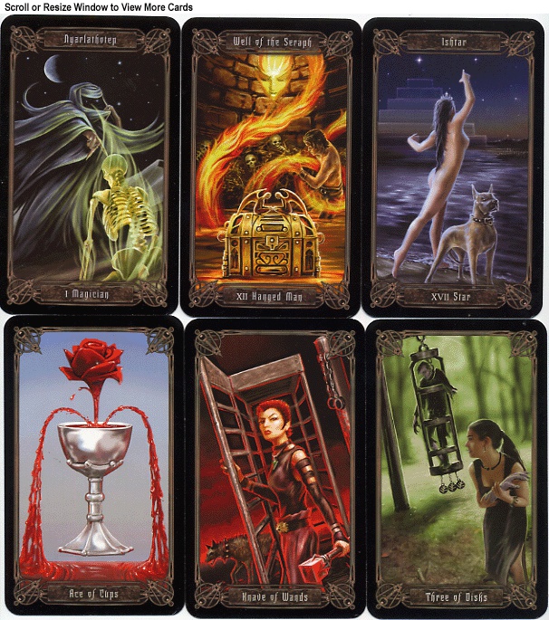 Lovecraft, or Lovecraft wannabe? Either way, this looks to be a fitting tribute to the creator of the Cthulu mythos. Author and deck creator Donald Tyson has written original works set in within Lovecraft's Cthulu mythos, and it is these works that are represented in the Necronomicon Tarot. The “neon” illustrations of Anne Stokes give the cards a simultaneously eerie and appealing flavor.