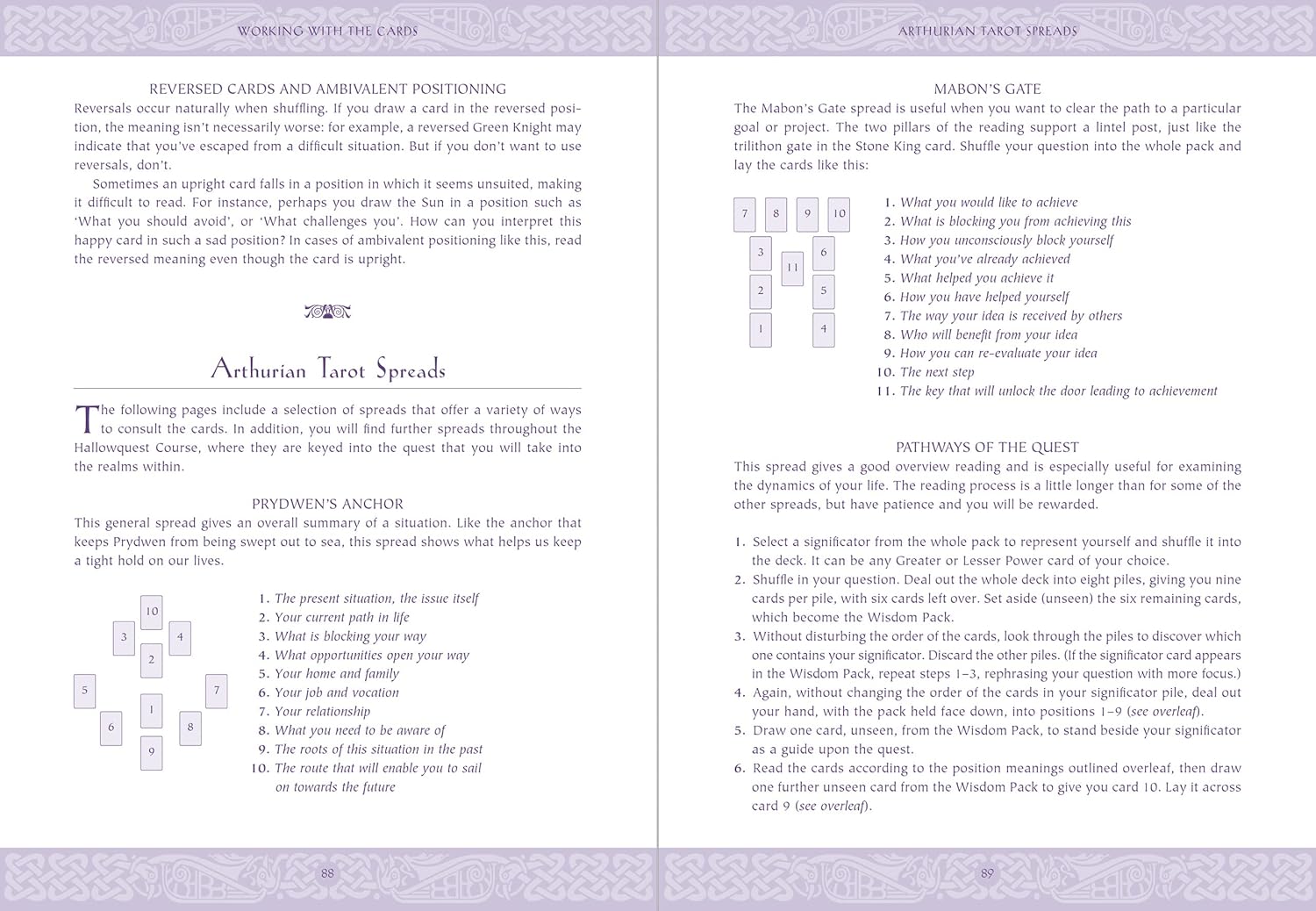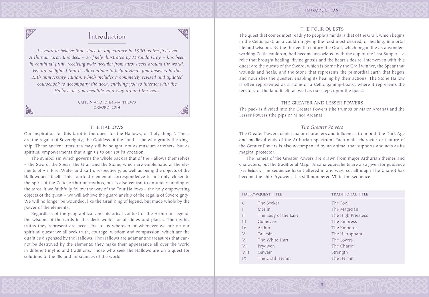 By following the seasonal quest for the Hallows – the ancient treasures of the Goddess of the Land – you discover the spiritual empowerments of your soul's purpose. Meditate on the suits of Sword, Spear, Grail and Stone to assimilate the teachings of the cards and establish your own access to the realms within the timeless kingdom of King Arthur and his court.