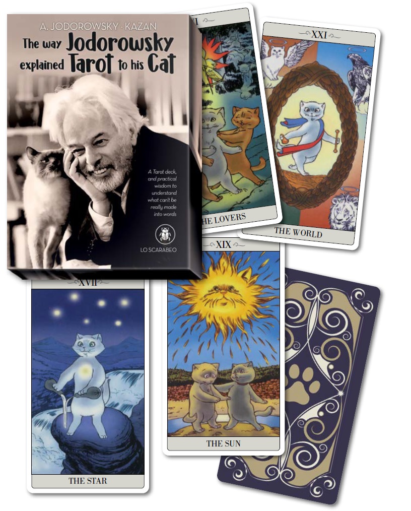 Jodorowsky, eclectic movie director, writer and Tarot expert, is mostly known for the bestselling book “the Way of Tarot”. Few know that he also wrote this book, with Kazan - the cat who believed himself a man - his faithful companion as a guide. It is a book with a strange visionary feeling, simple with words and extremely deep in insights: a book that follows the 22 cards - Majors only - deck illustrated by Christian Gaudin.