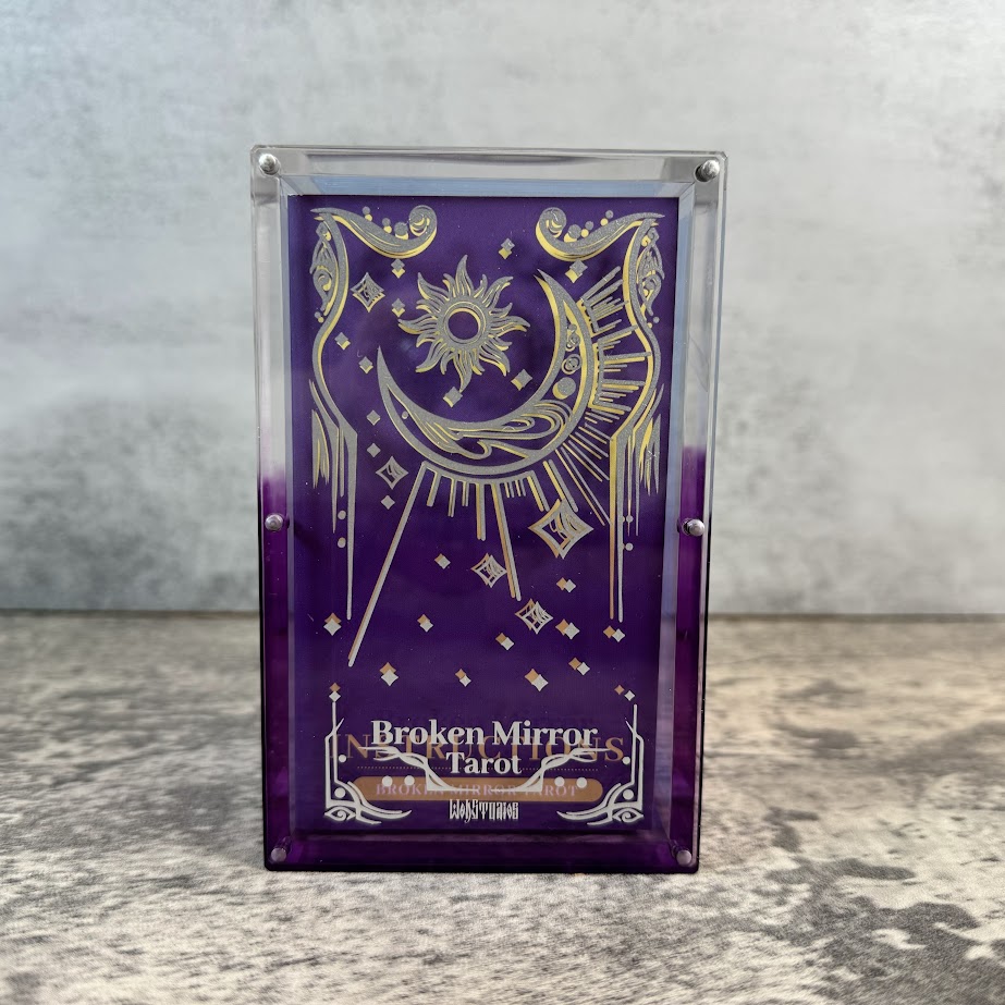 The box is made from high-crystallinity acrylic, gradient-colored in purple, and decorated with the shapes of the sun, the moon, and twinkling stars. Looking at it is as if looking at the night sky through the glass window of a medieval European church...