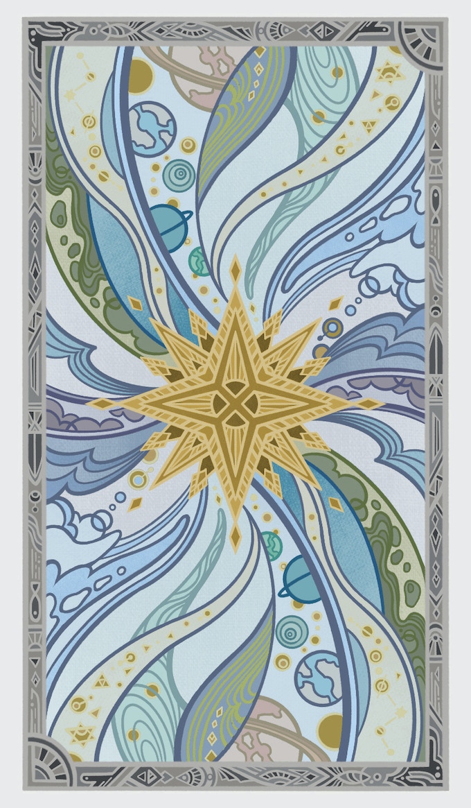 The limited card back design continues to take inspiration from the bold color statement and intricate pattern design characteristic of European stained glass paintings. While being open to interpretation, it is intended metaphoric of the source of all lights or the door to paradise.