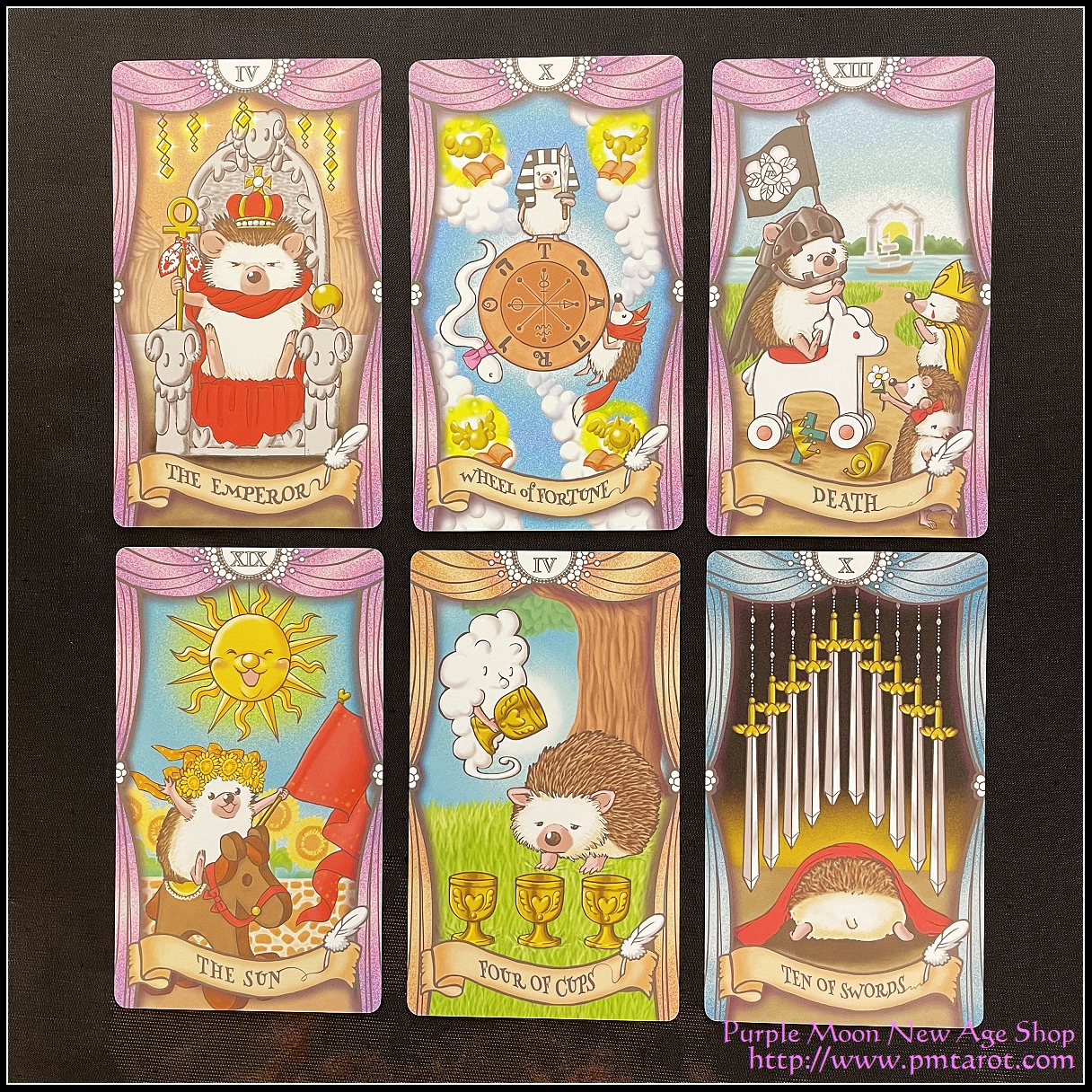 また、初心者や中級者だけでなく、いろいろな種類の可愛いカードを集めたいというコレクターやタロットを複数操る方々にも愛される作りになっております。 ライダー版タロットカードを使って占いをされる代わりに、このフェイブルヘッジホッグタロットを使うことで、可愛さに囲まれて占えます。紙質がよりハードに、箱の形もより使いやすくなってグレードアップしました。
