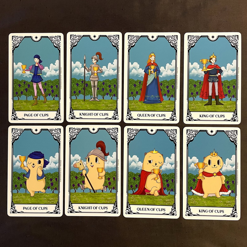 It contains cards with main characters from fairy tales, and does not differ a lot from what the Rider-Waite-Smith deck wishes to express. The cards are drawn in a unique and smooth style, so it is recommendable to those first entering tarot cards or those who are tired of conventional tarot cards. It comes with extra coate cards of cute animals, which is a perk the Fairytale Tarot Card. You may think of it as bonus cards and if you use it while reading, you can have a richer consultation.
