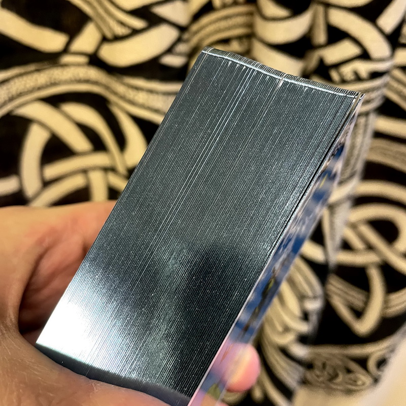 • 350gsm white core paper full color printing, total 94 cards (78-cards + 16-bonus coate cards) in 2.75”x4.48” (70x114mm) size with Glossy UV finish for more classy quality and edges have Sky-blue foils.