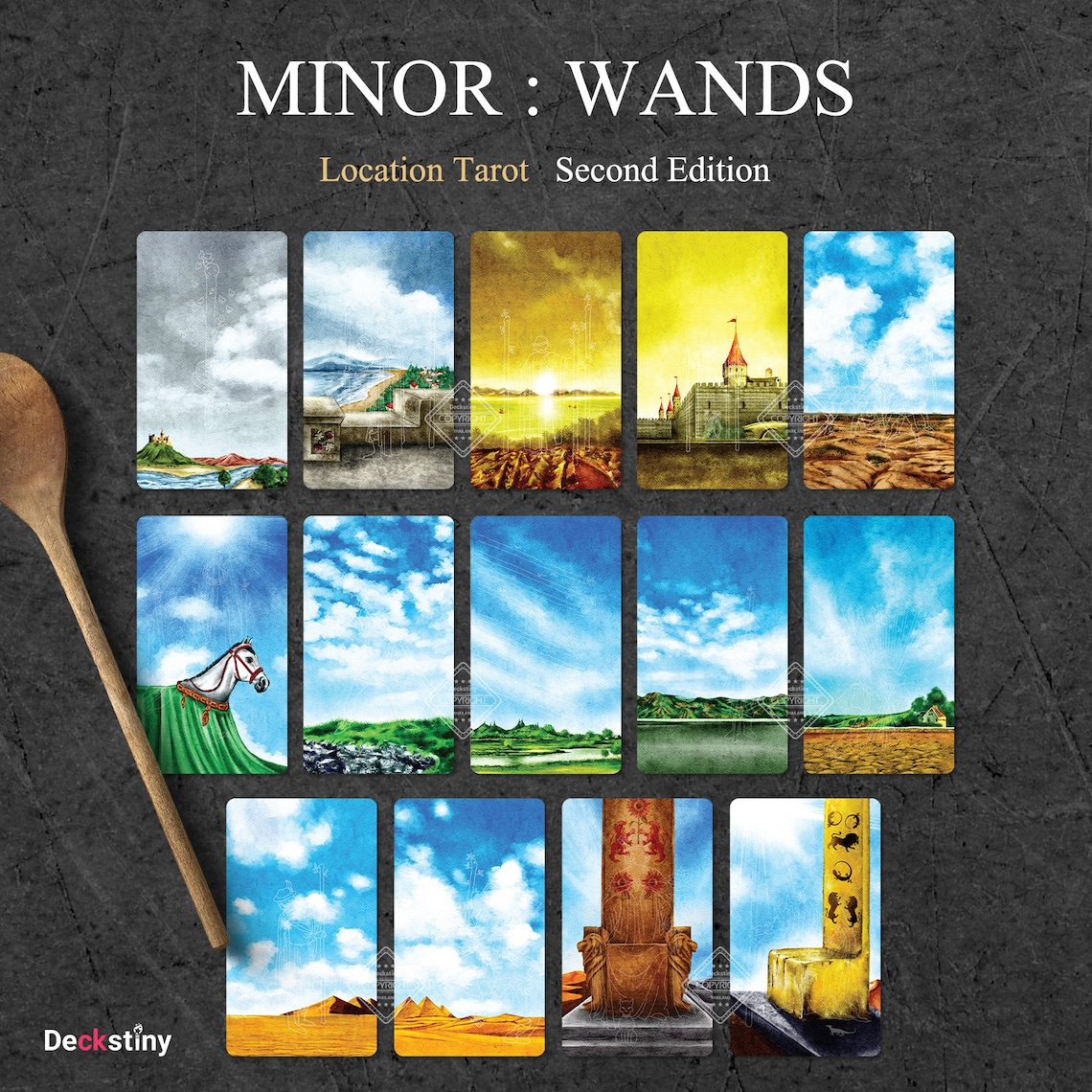 By removing the characters, Location Tarot is the tarot deck that emphasizes the beauty of Rider Waite Smith's scenery and places. The characters still exists in our memory. The Spirit of Place allows us to better appreciate the sunrise, sunset, day time, night time, power of nature, and history. If you are open, those little details on the card could reveal deeper meaning than you expected.
