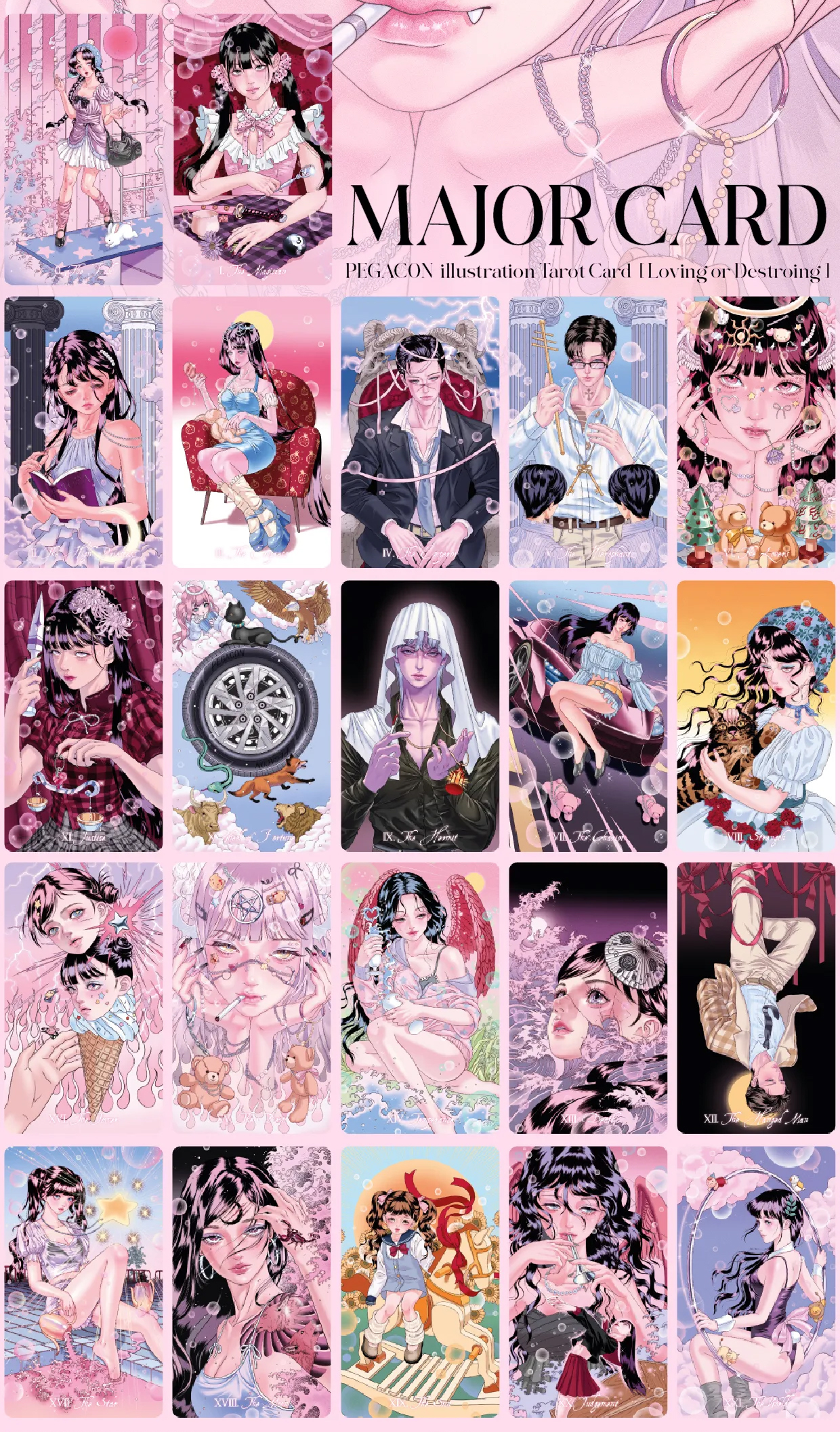 This item is required advance payment to order and estimate arrived in 1-3 weeks."Loving or Destroying" is an illustration-based Tarot deck created by the South Korean artist PEGACON (Lee Pegacon).