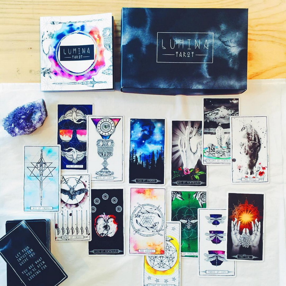 She's had a re-vamp, with a new box - which holds both deck and book! Slightly smaller card size, making it easier for you to handle her (wink) along with a couple of card edits and re-draws. LUMINA edition #2 is even more sassy, potent and magical than before.