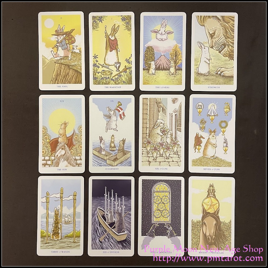 This self-published Tarot Card Deck is a Rider Waite Tarot including both Major Arcana & Minor Arcana (78 cards) & another 22 Oracle Cards with each card a unique painting of the cute little bunnies. This deck is great for your daily Tarot readings or give it to a Tarot-reader friend as a gift. Don't miss this deck if you are a Bunny Lover, Tarot Collectors, and Tarot Art Fanciers.