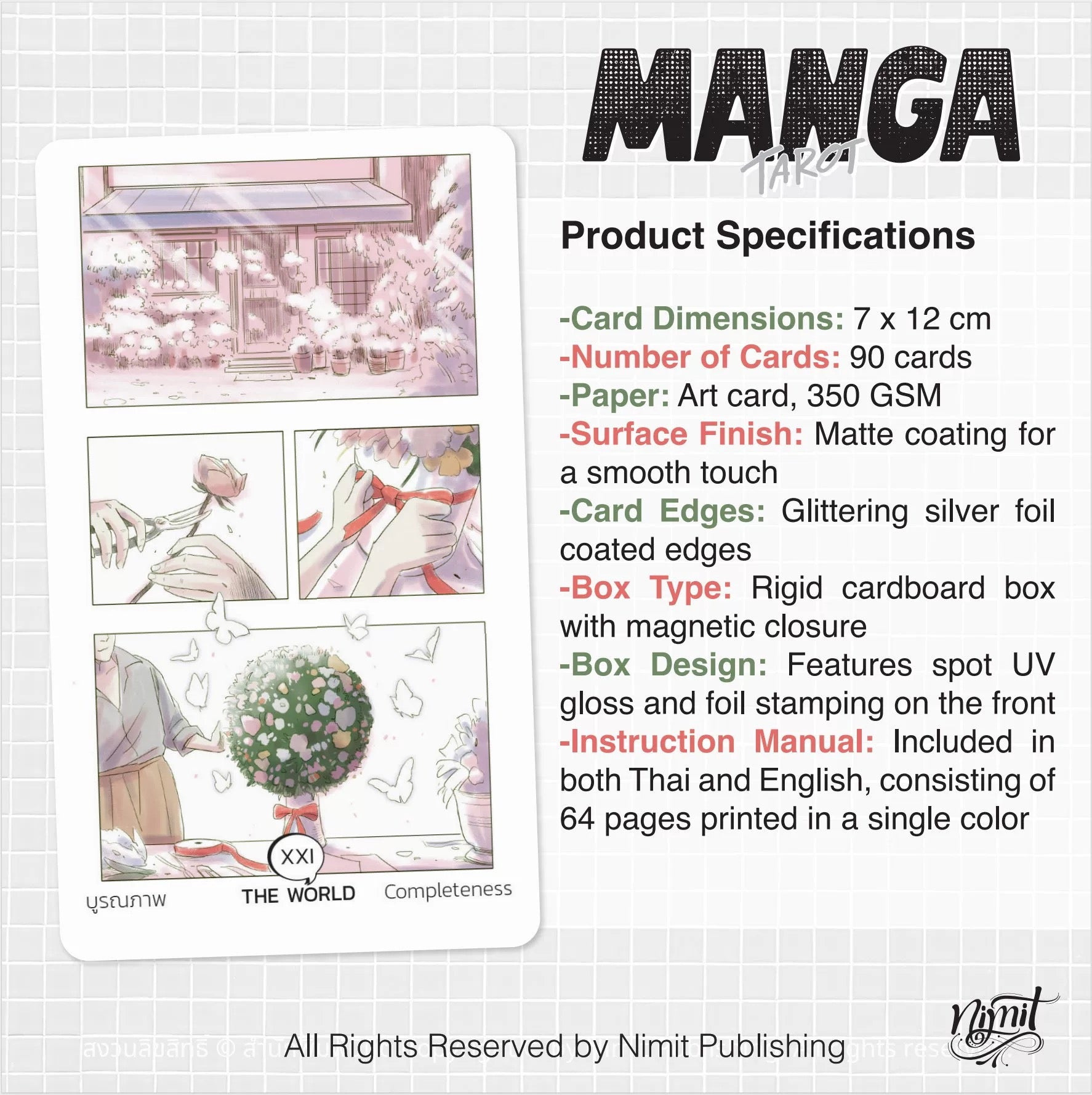 Step into an intuitive and magical journey of self-discovery with the Manga Tarot, a 90-card Tarot based Oracle Deck infused with the expressive power of manga storytelling. Each card captures human emotion, everyday experiences, and symbolic moments, offering guidance that feels both familiar and profound. Designed for seekers of clarity, this deck speaks to the heart with images that blend modern life and timeless archetypes, making every reading deeply personal.